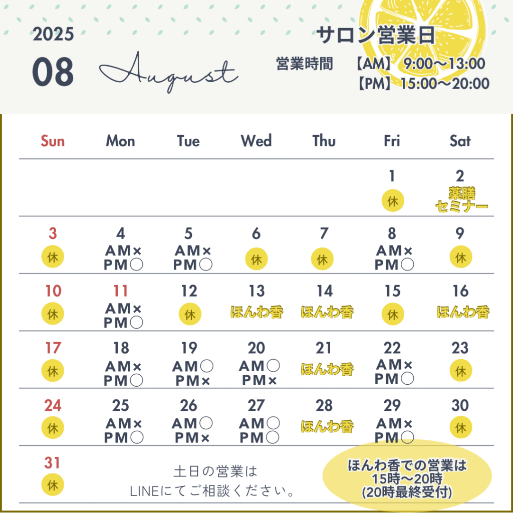 土日(毎週土曜日、日曜日)の営業は、LINEにて個別にご相談を承っております。