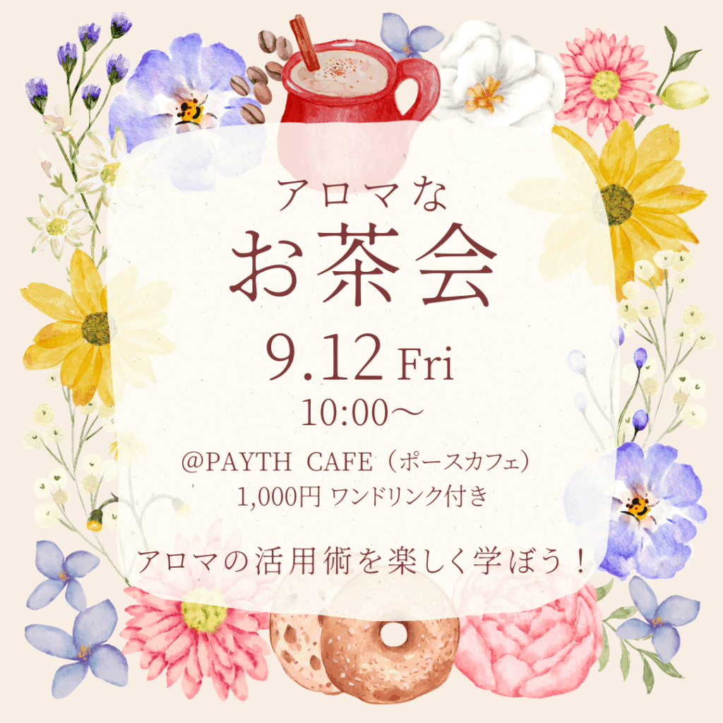 9月は岡ちゃんのアロマお茶会がついに開催✨今まで健康についてのお話やカラダの話は嬉々として語ってきましたが、ついにアロマの話をする時がやってまいりました!皆さんにアロマを身近に感じていただきたく、今回はお茶会という形で行いたいと思います!